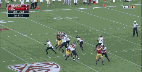 Een week geleden stond Arizona State zelf nog in de rankings, maar nadat ze de oren gewassen kregen door UCLA vlogen ze terecht uit deze rankings. Arizona State was het daar blijkbaar niet mee eens, want uit tegen #16 USC lieten ze zien dat ze wat te bewijzen hadden. In een weekend vol met spectaculaire uitslagen zorgde de Sun Devils voor de meest spectaculaire finish en wonnen met 38-34.
