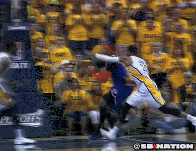 Met de winst in wedstrijd zes zetten de Pacers de Knicks definitief opzij. Hoewel New York zich als tweede, en Indiana zich als derde had geplaatst, lag het toch behoorlijk in de lijn der verwachting dat dit de uitkomst zou zijn. Het lukte de Pacers om ‘Melo en J.R. Smith aan banden te leggen. Roy Bibbert demonstreert hoe dat ongeveer in z’n werk gaat.