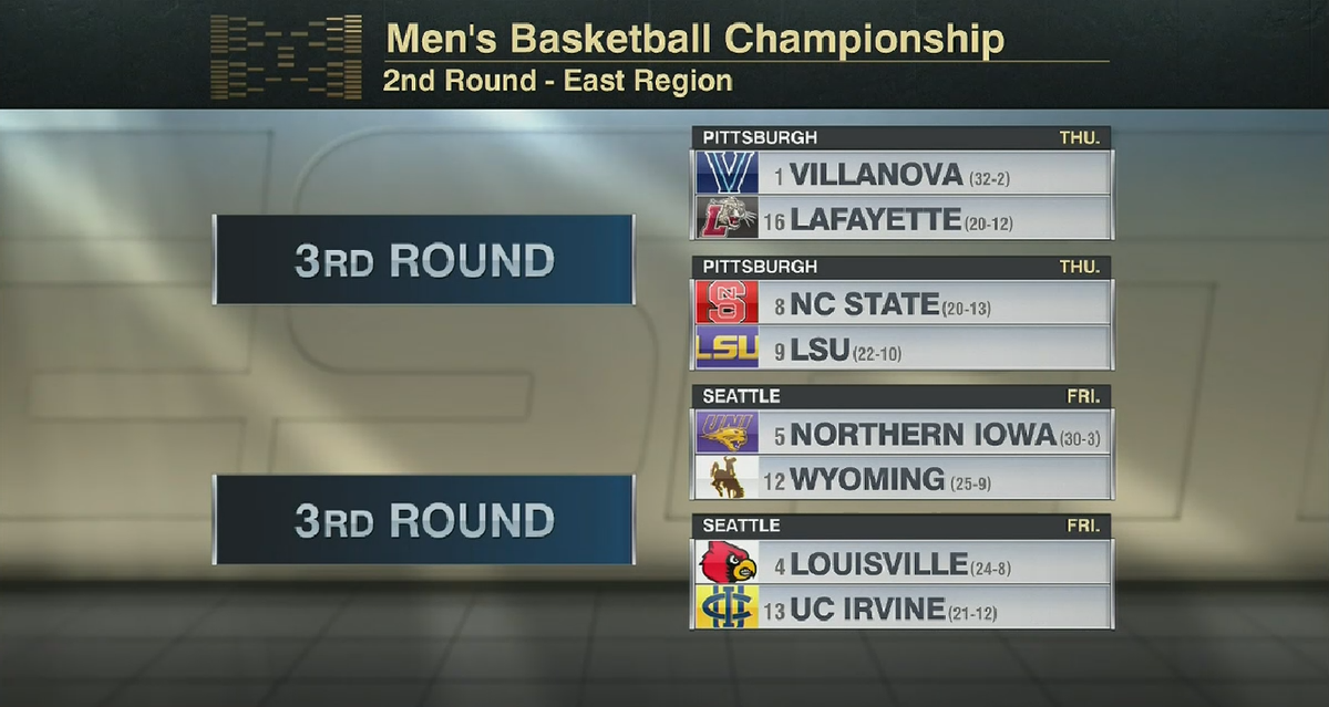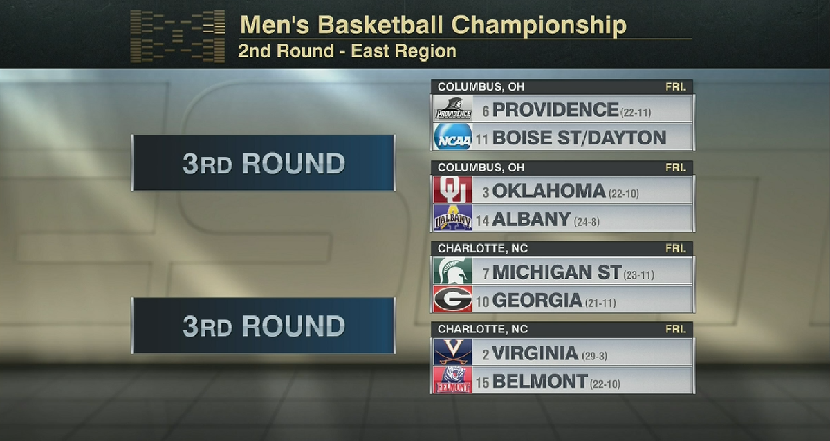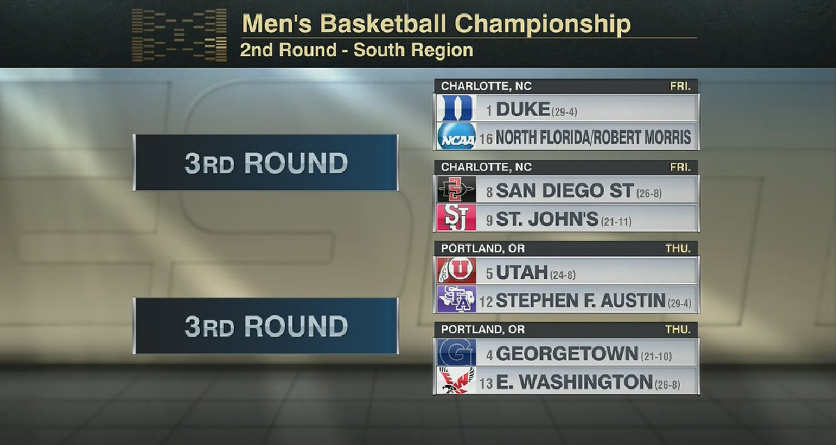 Ondanks een verlies in de halve finale van het ACC-toernooi, heeft Duke alsnog een #1 seed gekregen. Verder komt Utah misschien wel de gevaarlijkste ‘kleine’ ploeg tegen in Stephen F. Austin, dat vorig jaar al VCU wist te verrassen, en heeft ook Georgetown een lastige loting met Eastern Washington, dat beschikt over Tyler Harvey, de topscorer in het NCAA basketball. De grootste verrassing qua deelnemende teams is misschien wel UCLA, dat een #11 seed heeft gekregen, en volgens veel experts geen schijn van kans meer had om deel te nemen aan het toernooi.